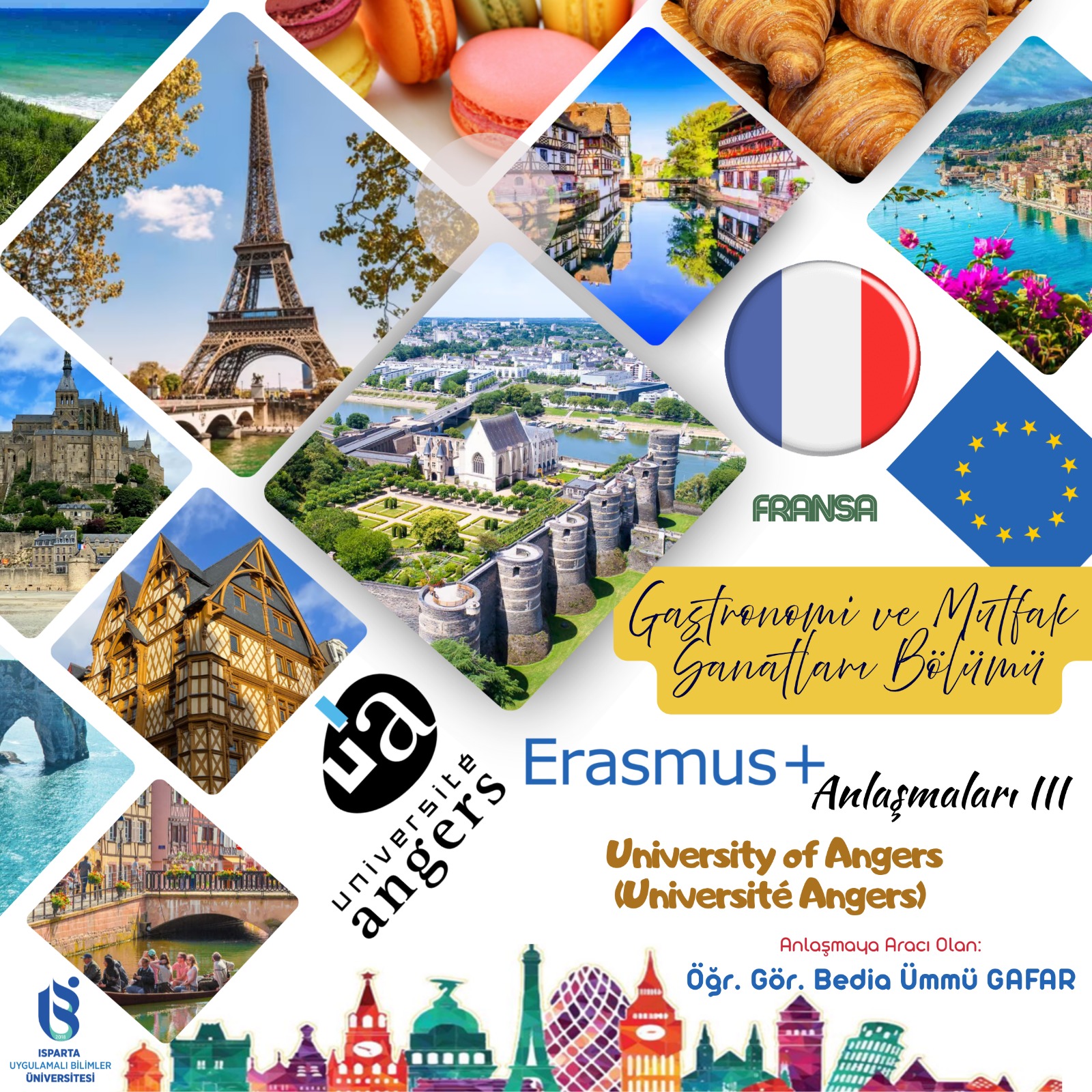 Gastronomi odaklı uluslararası iş birliklerimize bir yenisini daha ekledik! 🌍🍽️📍 Fransa – University of Angers (Université d’Angers) ile imzalanan Erasmus+ anlaşması sayesinde öğrencilerimiz;