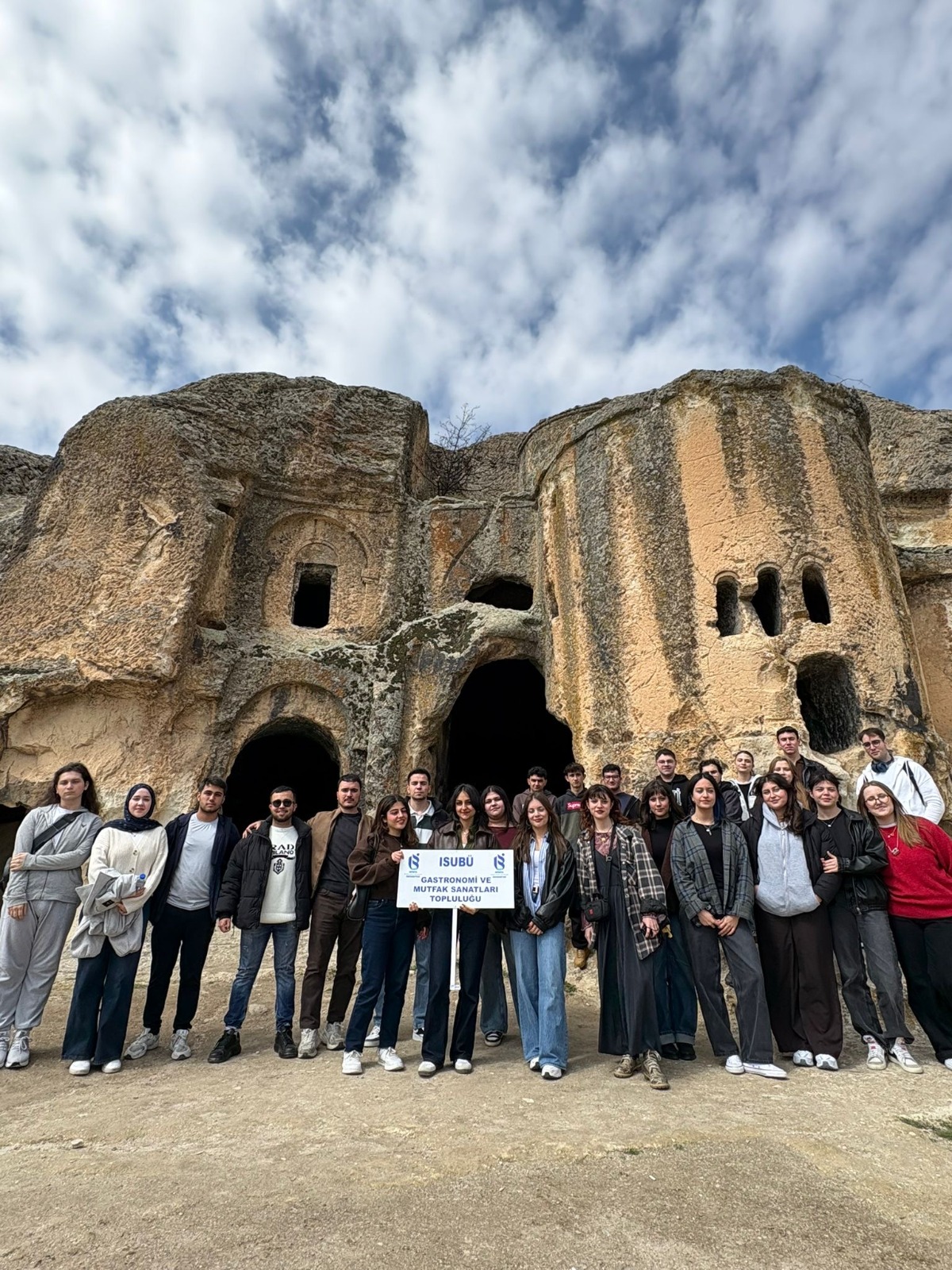 Gastronomi ve Mutfak Sanatları (GMS) topluluğu tarafından 27 Mart 2026 tarihinde Ayazini Köyü ve Frig Vadisi’ni kapsayan sosyal ve kültürel bir gezi etkinliği gerçekleştirildi. Dr. Emre Yaşar rehberliğinde gerçekleştirilen gezi kapsamında öğrenciler, Frig uygarlığına ait kaya oyma yerleşimleri ve tarihi yapıları yerinde inceleme fırsatı buldu. Katılımcılar, bölgenin tarihi geçmişi, kültürel mirası ve coğrafi yapısı hakkında bilgi edinirken, yerel yaşam kültürünü yakından gözlemleme imkânı da elde etti. Etkinlik süresince ayrıca Afyonkarahisar’ın gastronomik değerleri ele alınarak, bölgeye özgü ürünler ve mutfak kültürü üzerine değerlendirmelerde bulunuldu. Kültürel miras ile gastronomi arasındaki ilişki yerinde incelenerek, öğrencilerin teorik bilgilerini saha deneyimiyle pekiştirmeleri sağlandı.