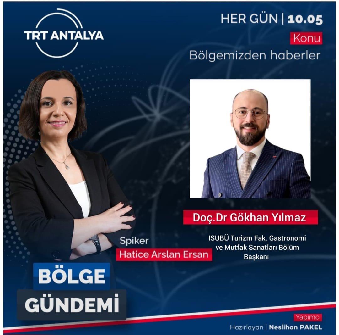 30 Aralık 2025 tarihinde TRT Antalya’da yayınlanan “Bölge Gündemi” programında, Isparta Uygulamalı Bilimler Üniversitesi Turizm Fakültesi Gastronomi ve Mutfak Sanatları Bölümü öğretim üyelerinden Doç. Dr. Gökhan Yılmaz konuk oldu.